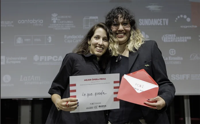 Foto: Mariel Escobar y Florencia Paz, directora y productora de ‘Lo que queda’, Faro de Oro 2025 a la Mejor Ópera Prima del FCS. Fotografía de Marcos Bardón.
